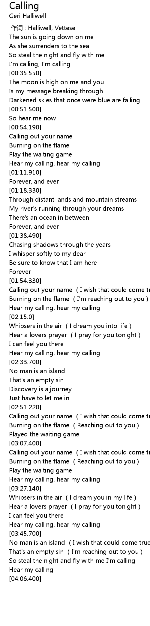 | [00:31.900] | I'm calling, I'm calling |