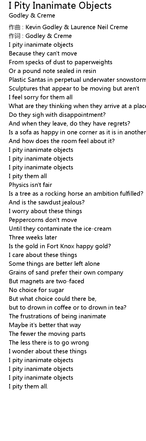 | I pity inanimate objects | |