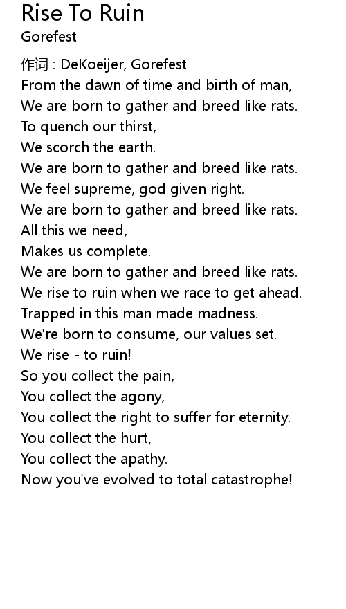 | Song | Rise To Ruin |