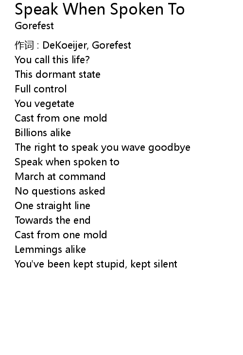 | Song | Speak When Spoken To |