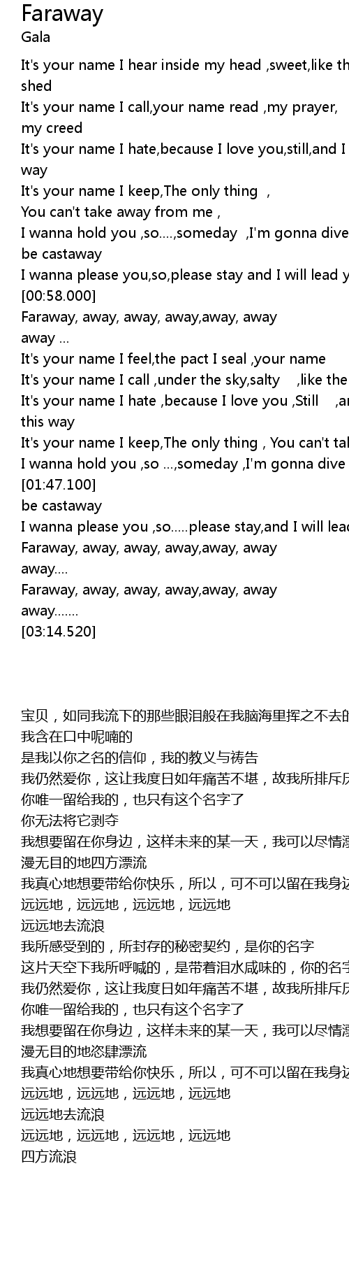 Faraway, away, away, away,away, away |