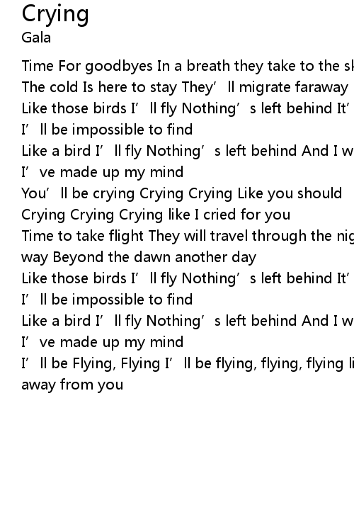 | I’ll be Flying, Flying I’ll be flying, flying, flying like I should Flying away from you |