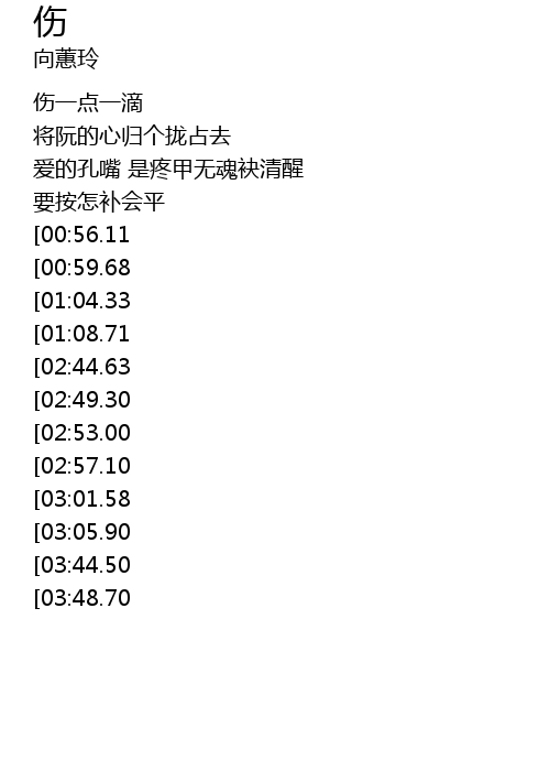 | [02:29.65][00:59.68] | 刺阮的心亲像一支箭 |
