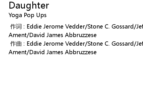 | [00:00.000] | 作词 : Eddie Jerome Vedder/Stone C. Gossard/Jeffrey Allen Ament/David James Abbruzzese |