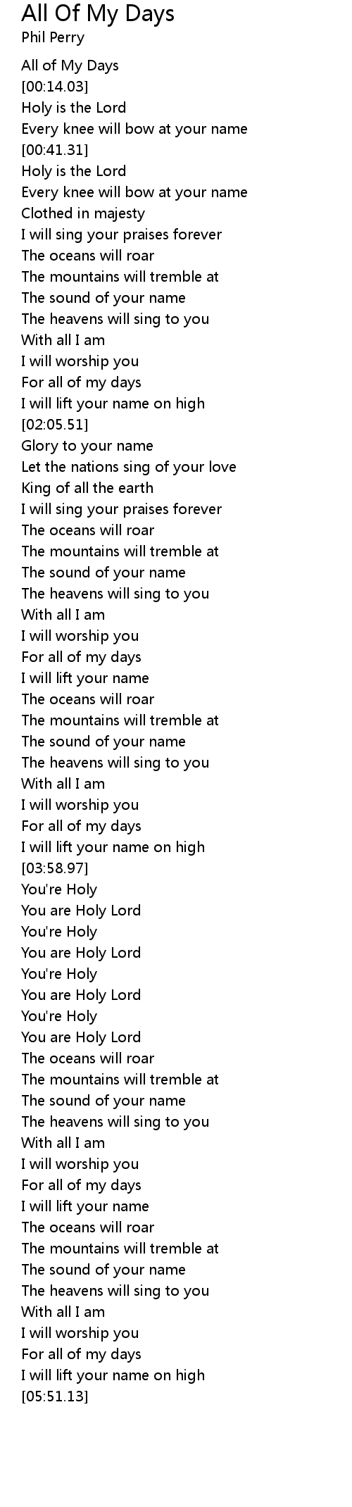 All of My Days |