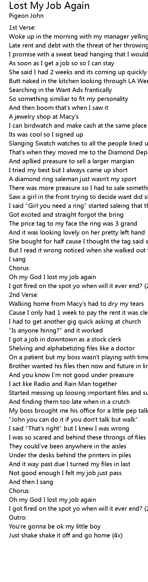 Oh my God I lost my job again |