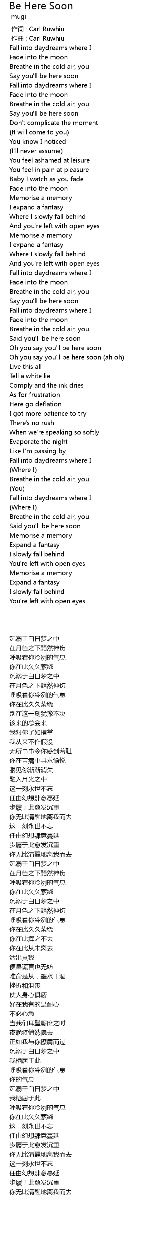 | [00:27.285] | Say you' ll be here soon |