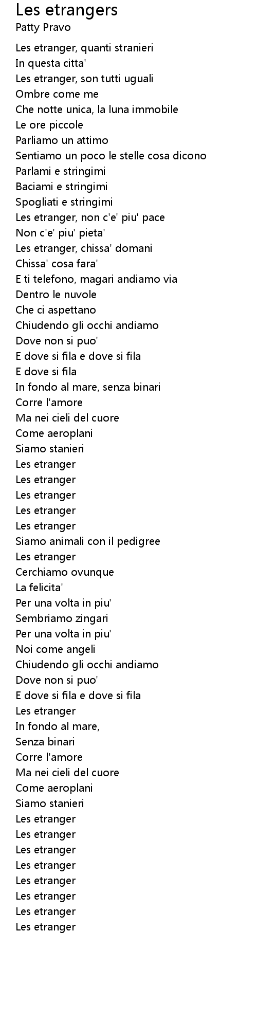 Les etranger, non c'e' piu' pace |