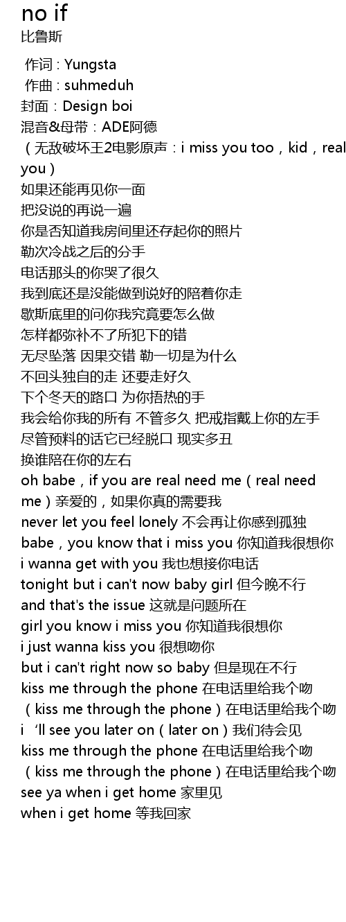 | [01:58.703] | kiss me through the phone zài diàn huà lǐ gěi wǒ gè wěn |