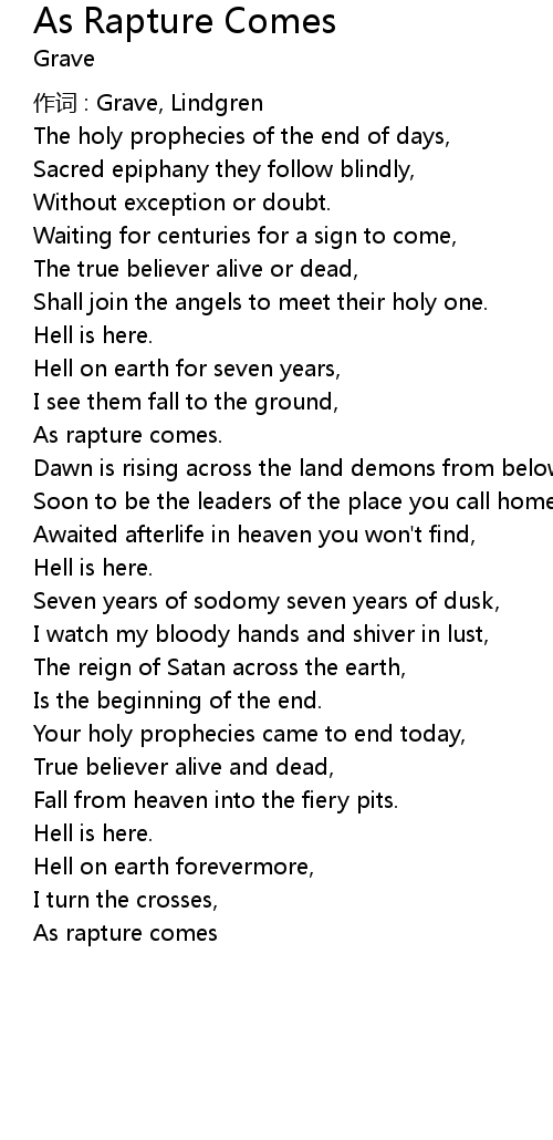 | Song | As Rapture Comes |