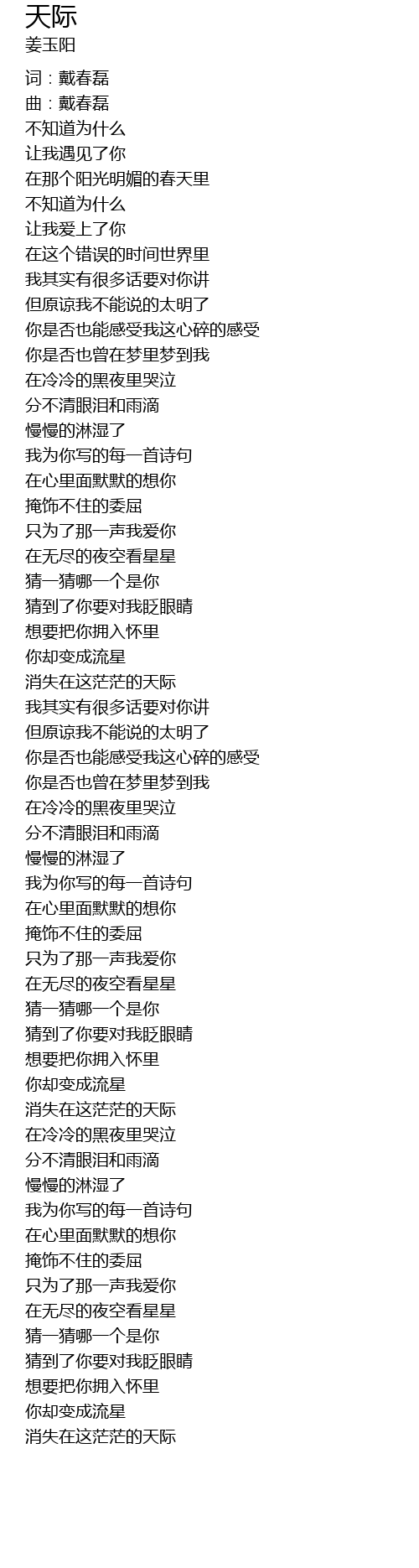 | [03:45.61] | zài wú jìn de yè kōng kàn xīng xīng |