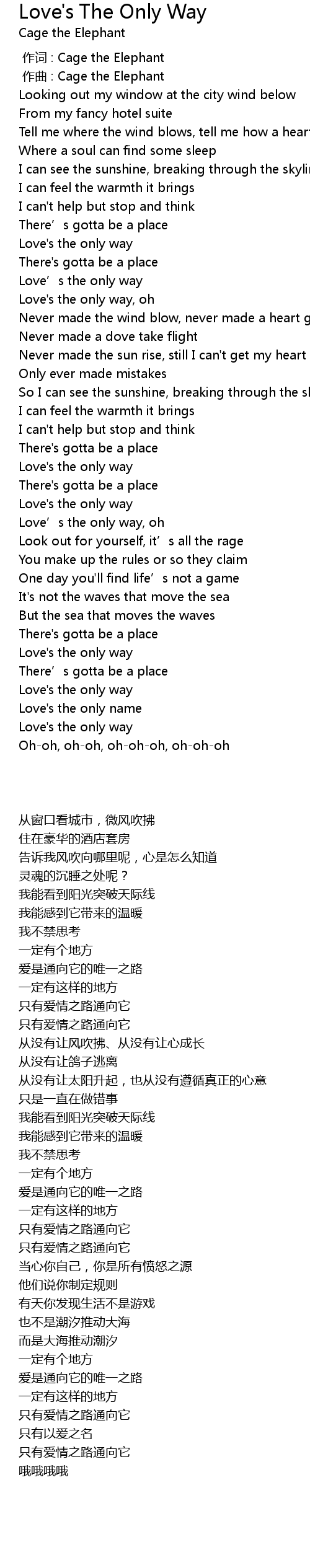 | [02:23.63] | Love’s the only way, oh |