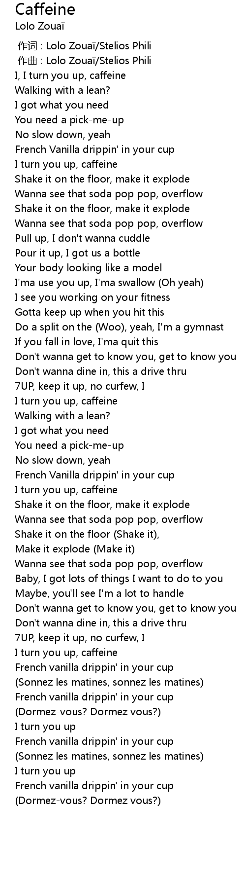 | [00:01.96] | I, I turn you up, caffeine |