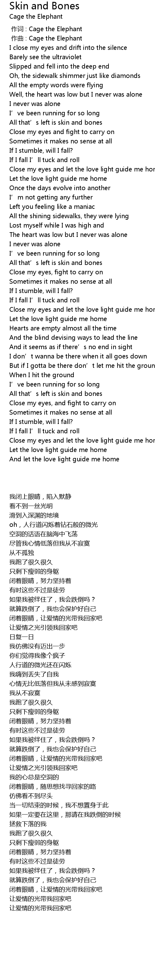 | [00:01.000] | 作曲 : Cage the Elephant |
