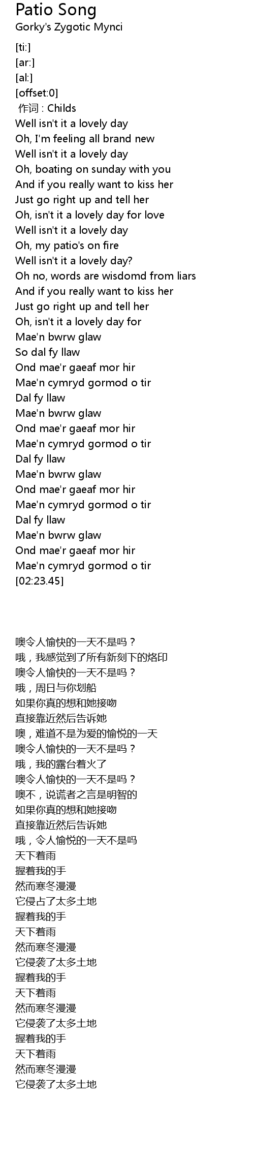 | [01:26.55] | Oh, isn' t it a lovely day for |