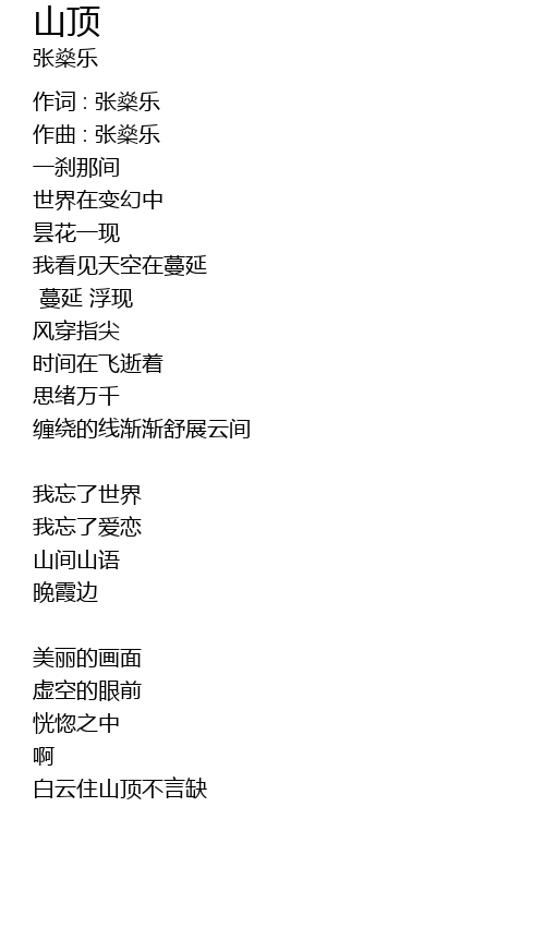 | 作词 : 张燊乐 | |