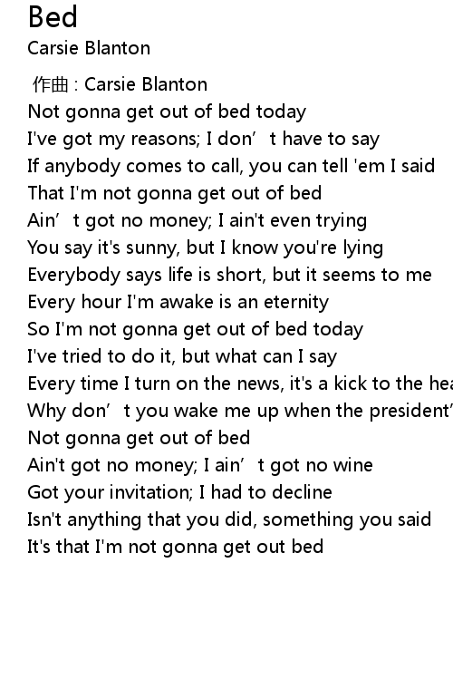 | [01:35.80] | So I'm not gonna get out of bed today |