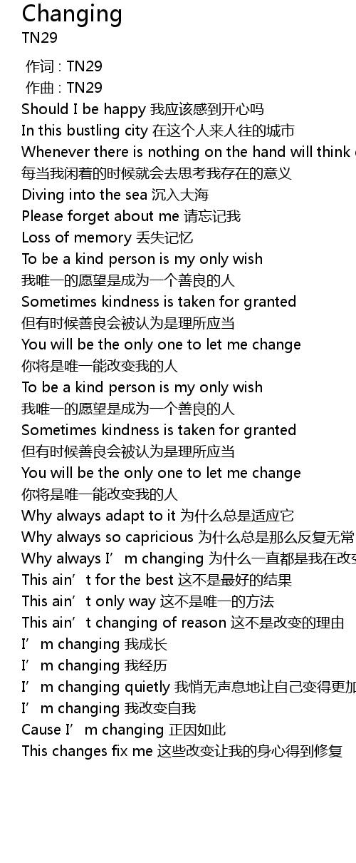 | [00:00.000] | 作词 : TN29 |