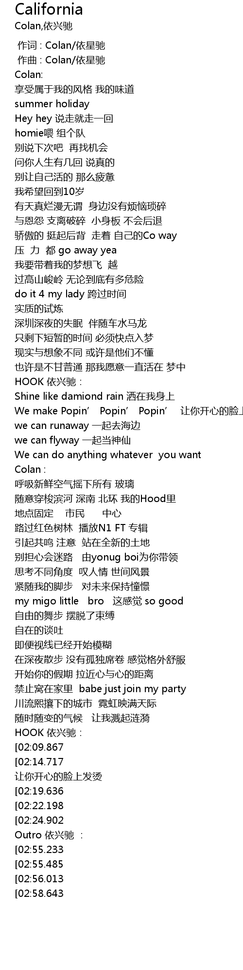 | [03:06.576][02:56.013] | xiang zai luo shan ji kai zhe Lowrider |
