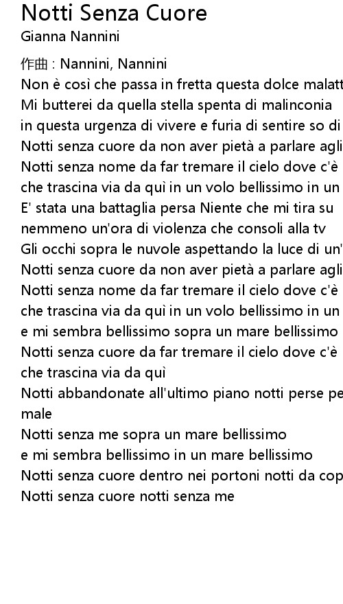 | Notti senza cuore da non aver pieta a parlare agli angeli qualcuno sentira | |