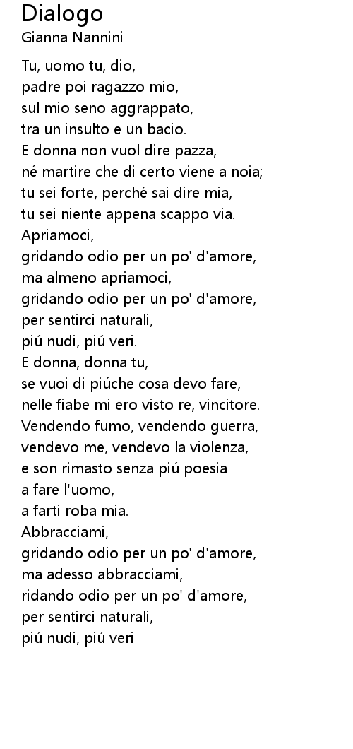 | tu sei forte, perche sai dire mia, | |