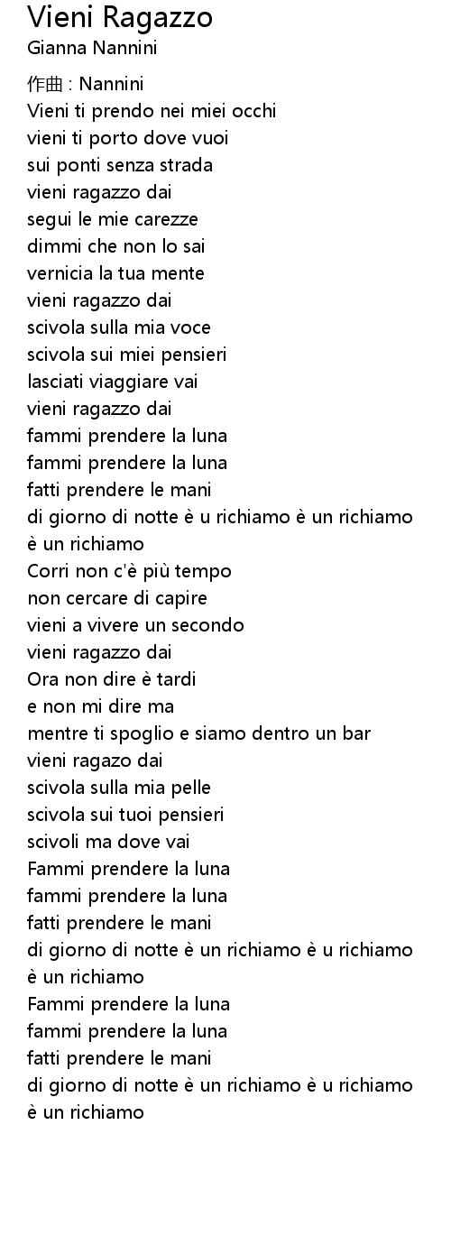 | Song | Vieni Ragazzo |
