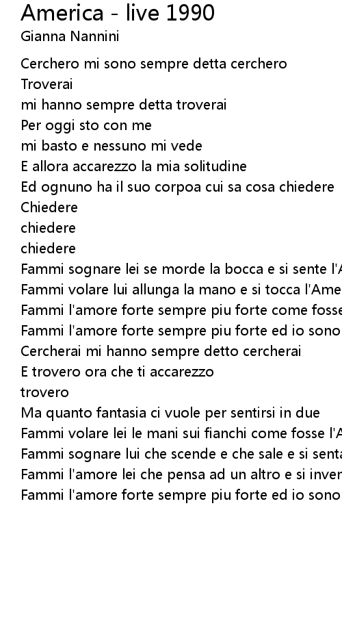 Fammi l'amore forte sempre piu forte come fosse l'America |