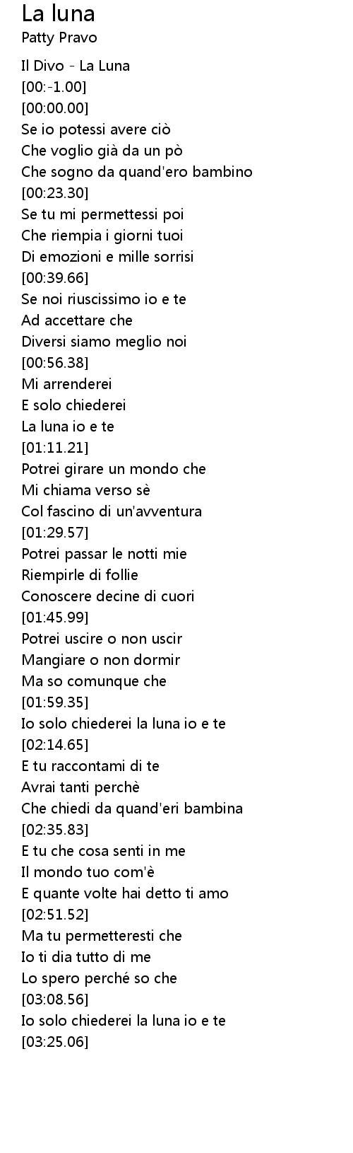 | [03:13.17] | Io solo chiederei la luna io e te |