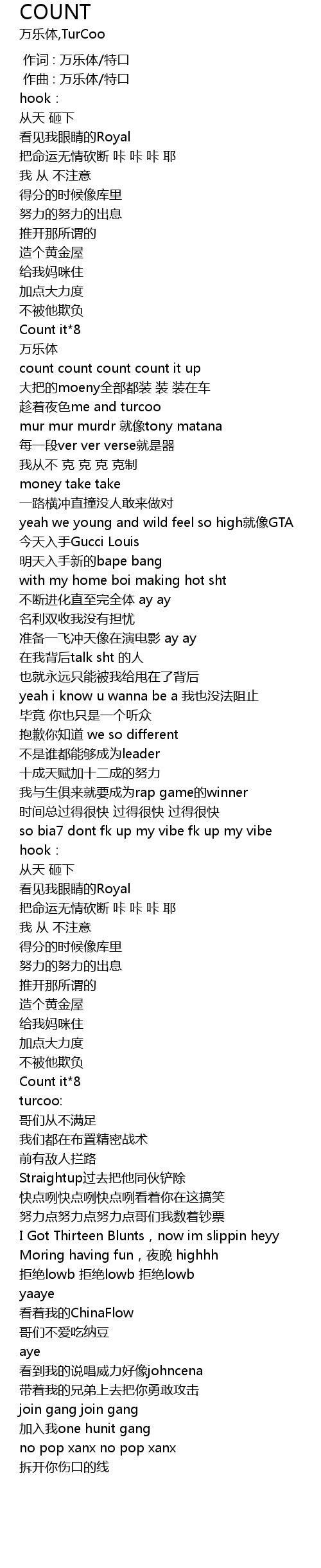 | [02:59.198] | 加入我one hunit gang |