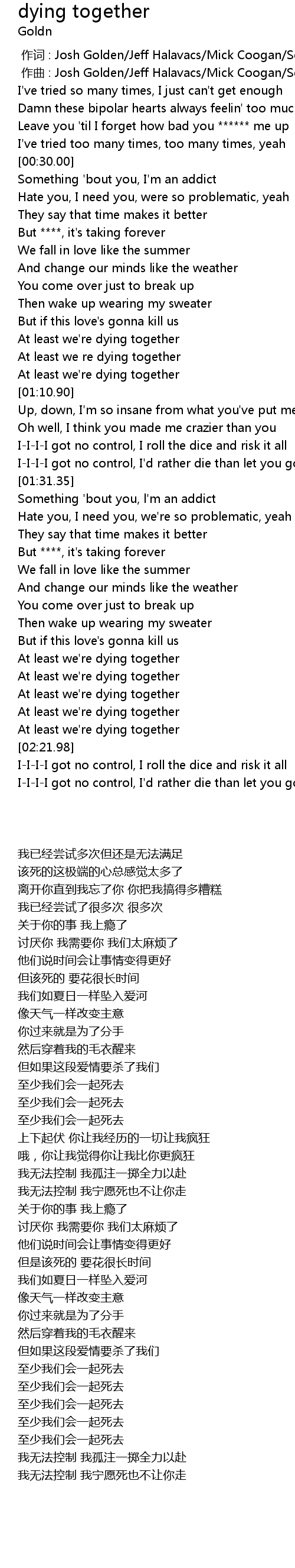 | [01:26.10] | I-I-I-I got no control, I'd rather die than let you go |