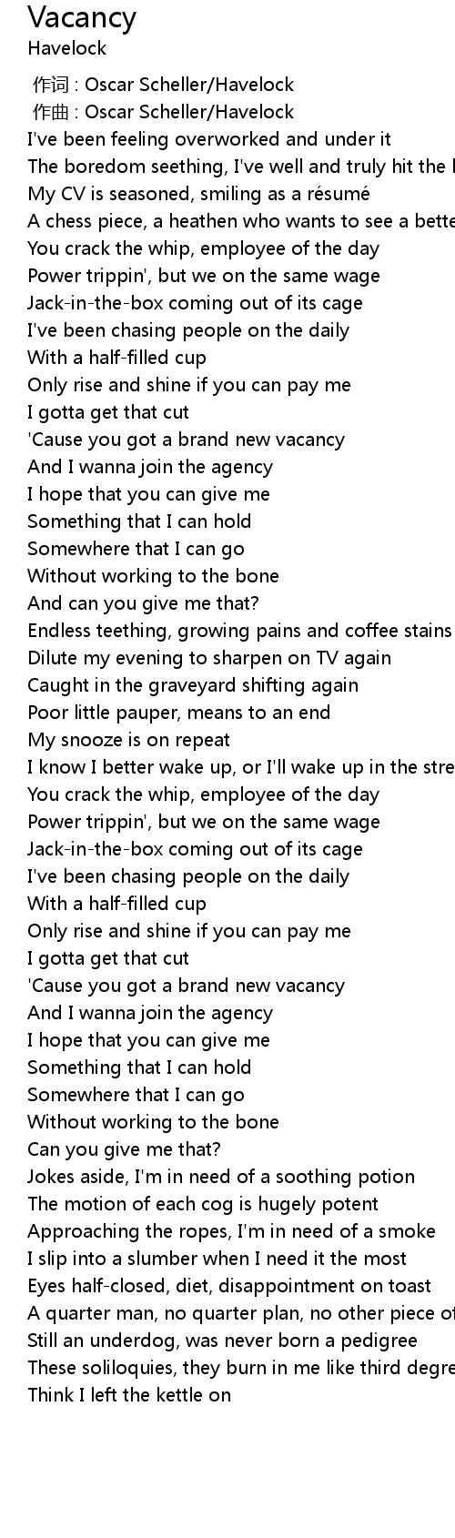 | [00:58.199] | ' Cause you got a brand new vacancy |