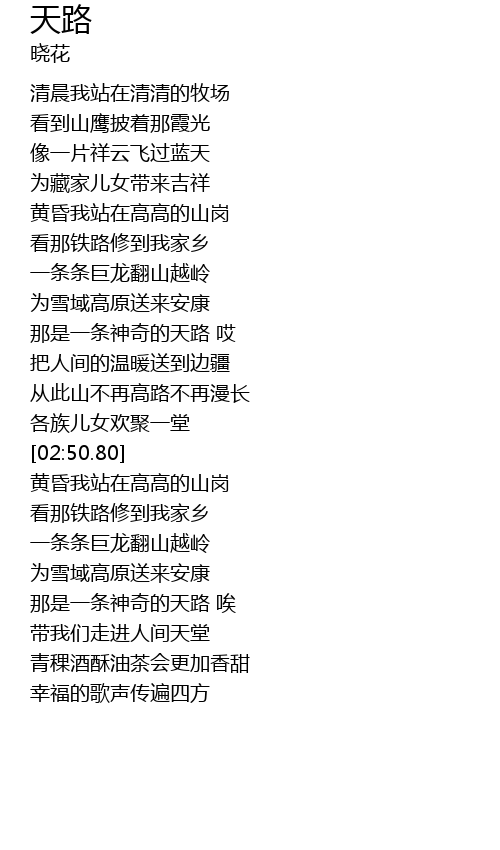 | [02:21.13] | 那是一条神奇的天路 哎 |