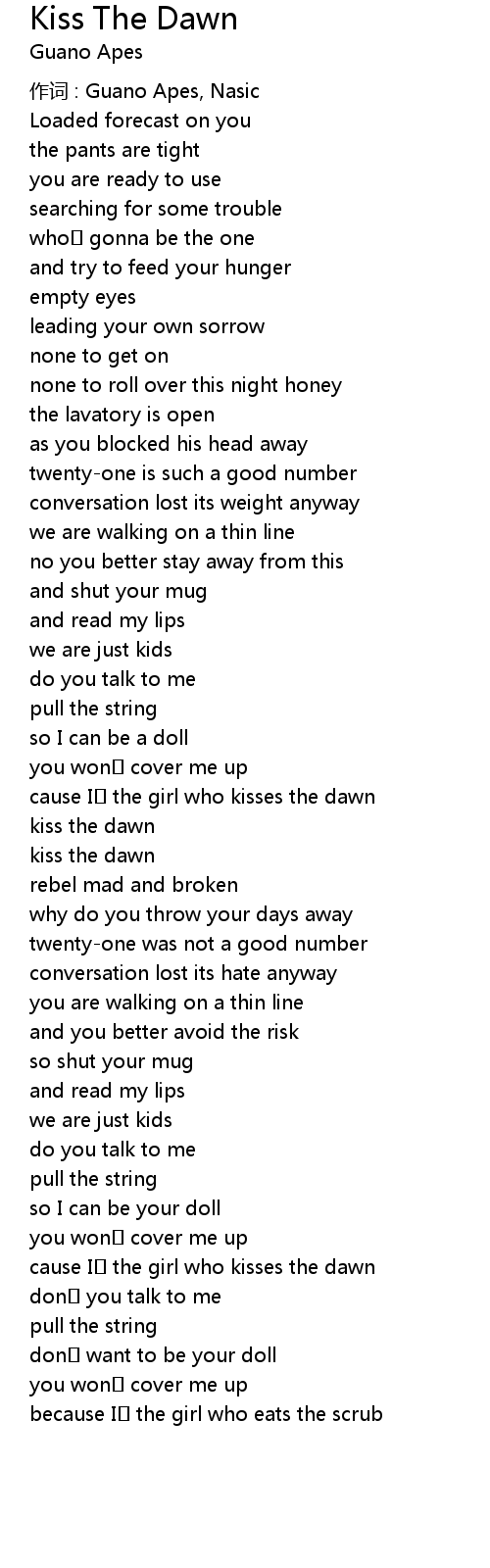 | cause I the girl who kisses the dawn | |