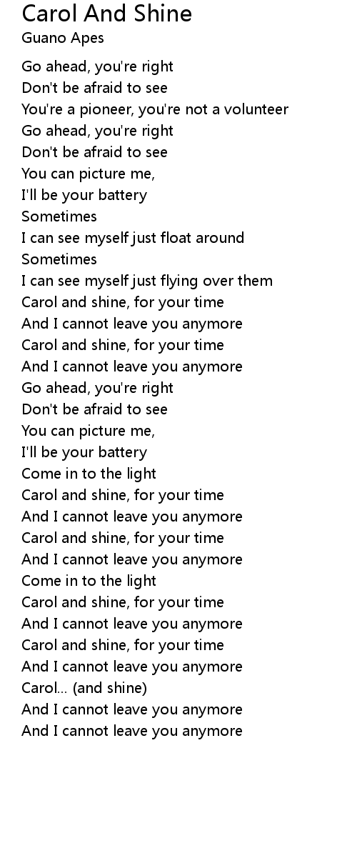 Carol and shine, for your time |