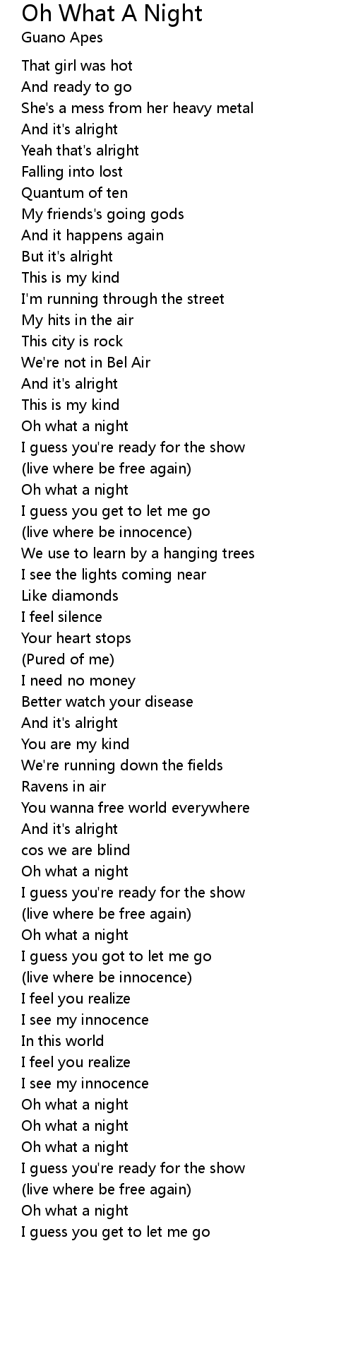 Oh what a night |