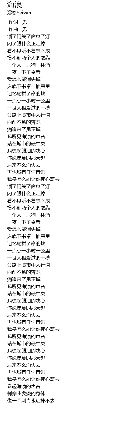 | [03:26.824] | wo ting jian hai lang de sheng yin |