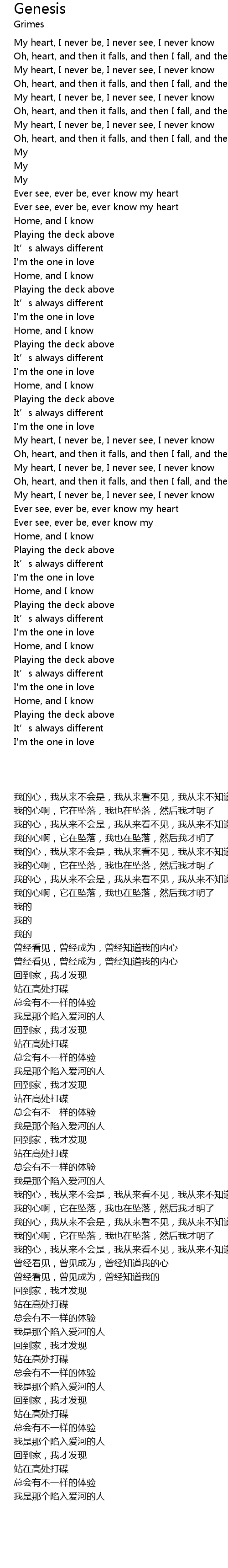 | [00:56.98] | Oh, heart, and then it falls, and then I fall, and then I know |