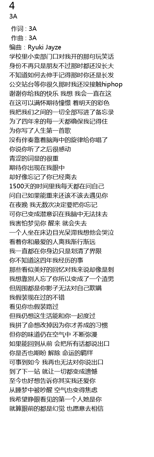 | [00:00.000] | 作词 : 3A |
