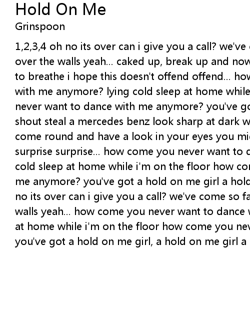 1,2,3,4 oh no its over can i give you a call? we've come so far we can't climb over the walls yeah... caked up, break up and now i want to be friends its hard to breathe i hope this doesn't offend offend... how come you never want to dance with me anymore? lying cold sleep at home while i'm on the floor how come you never want to dance with me anymore? you've got a hold on me girl knives out, we shout steal a mercedes benz look sharp at dark without a power shot lense can i come round and have a look in your eyes you might just find you'll get a little surprise surprise... how come you never want to dance with me anymore? lying cold sleep at home while i'm on the floor how come you never want to dance with me anymore? you've got a hold on me girl a hold on me girl a hold on me girl oh no its over can i give you a call? we've come so far we can't climb over the walls yeah... how come you never want to dance with me anymore? lying cold sleep at home while i'm on the floor how come you never want to dance with me anymore? you've got a hold on me girl, a hold on me girl a hold on me girl |