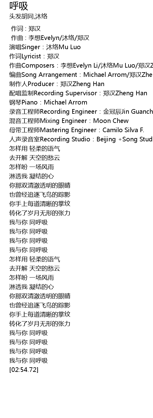 | [01:02.34] | 我与你 同呼吸 |