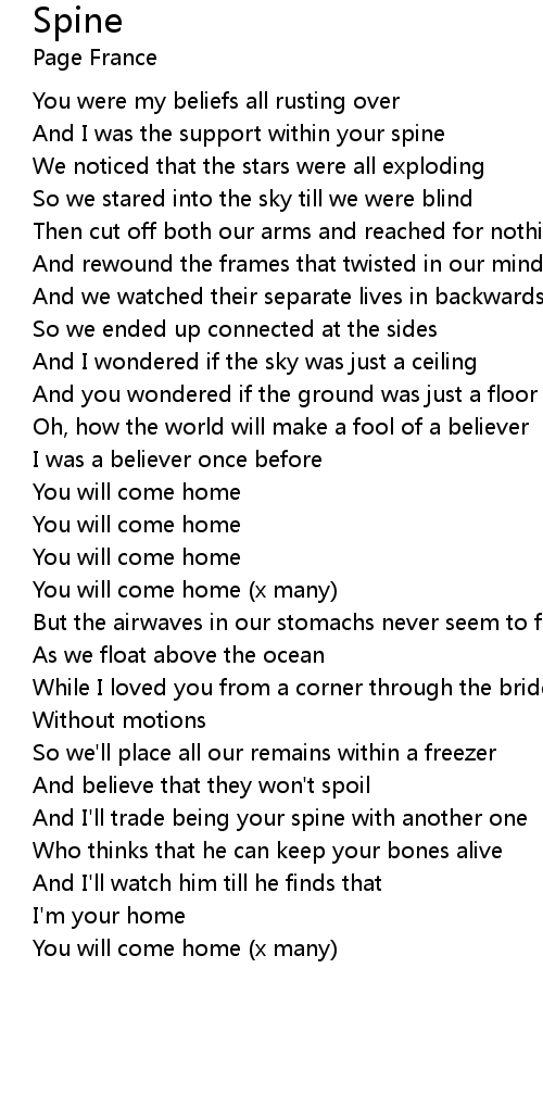 And I'll trade being your spine with another one |