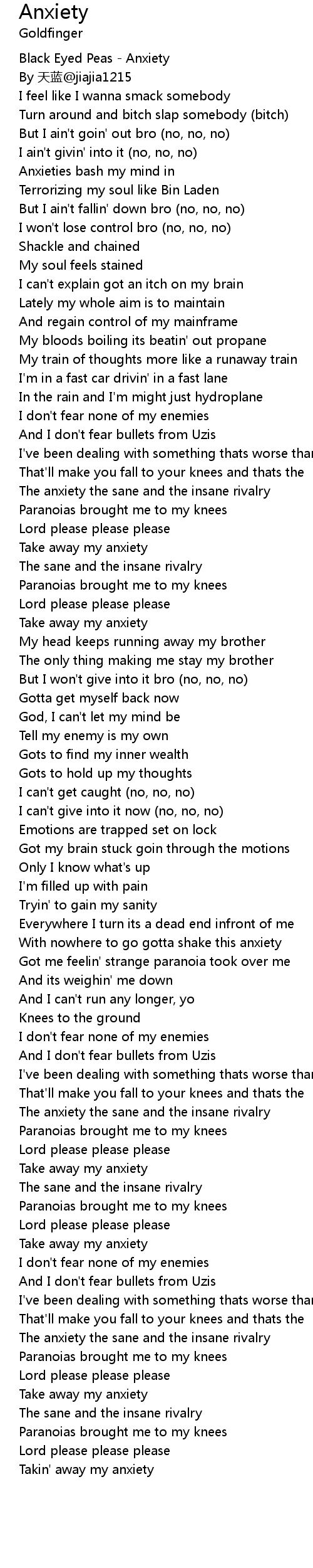 | [00:00.50] | Black Eyed Peas Anxiety |