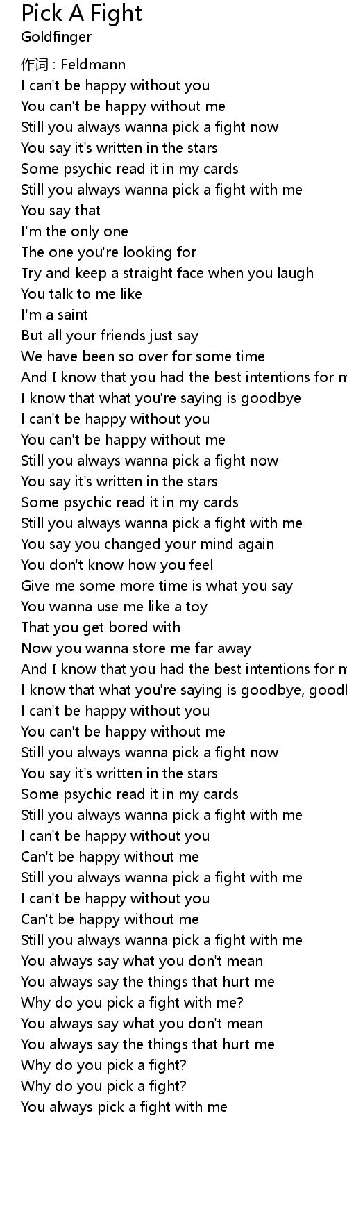 | Still you always wanna pick a fight with me | |