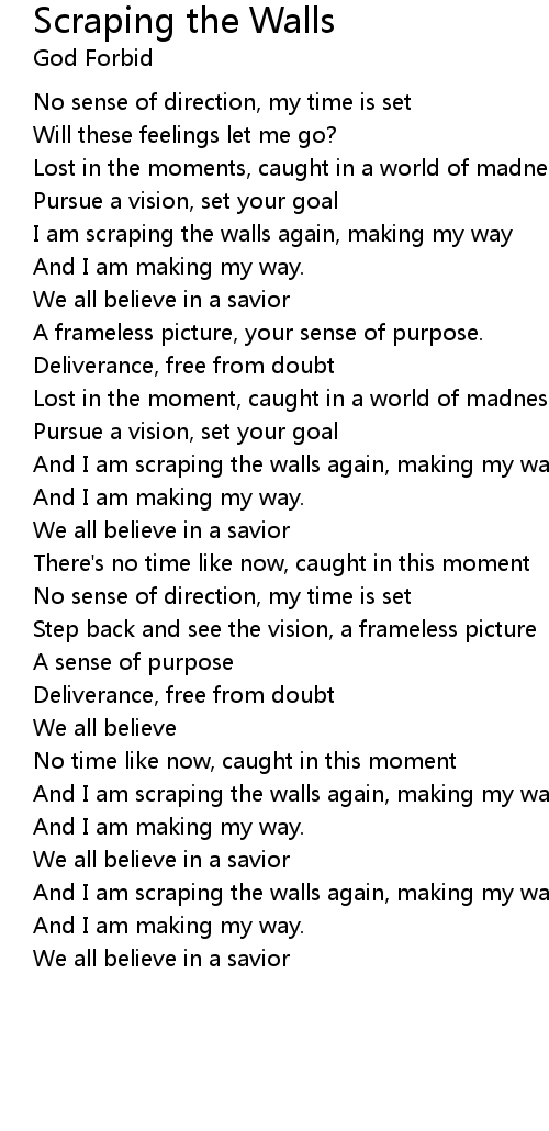 I am scraping the walls again, making my way |