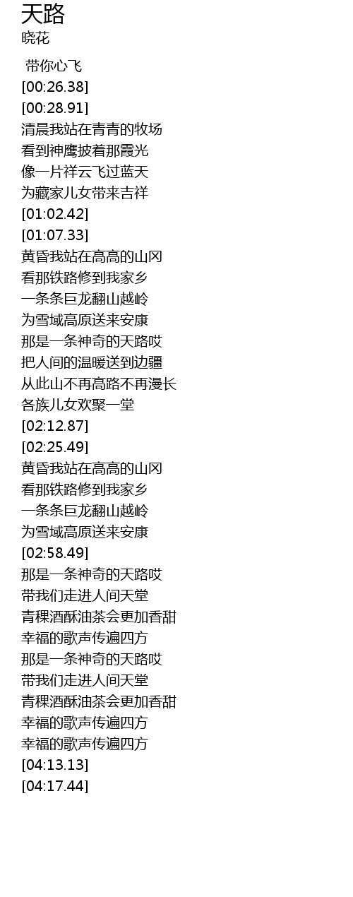 | [01:32.12] | 为雪域高原送来安康 |
