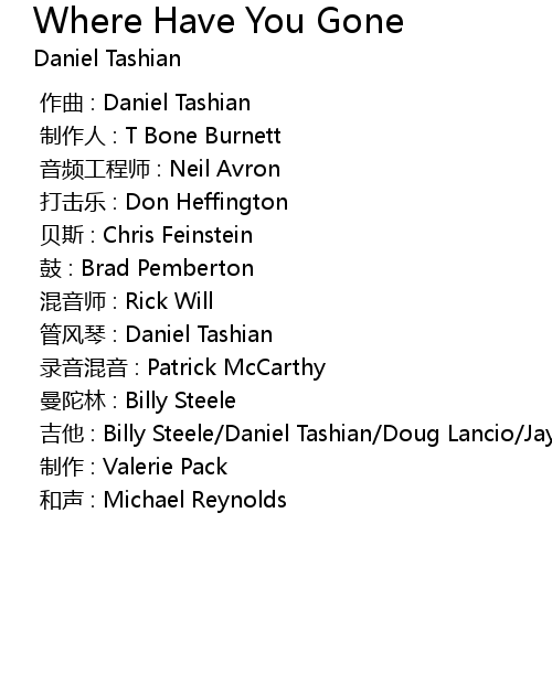 | [00:00.000] | zuo qu : Daniel Tashian |