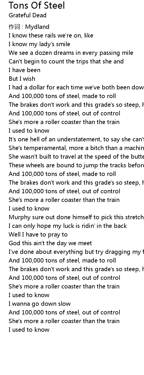 | The brakes don't work and this grade's so steep, her engine's sure to blow | |