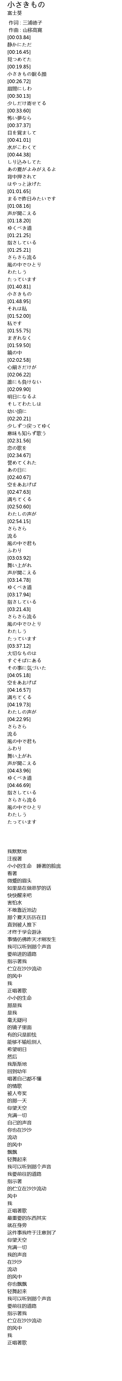 | [00:20.98] | 小さきもの眠る顔 |