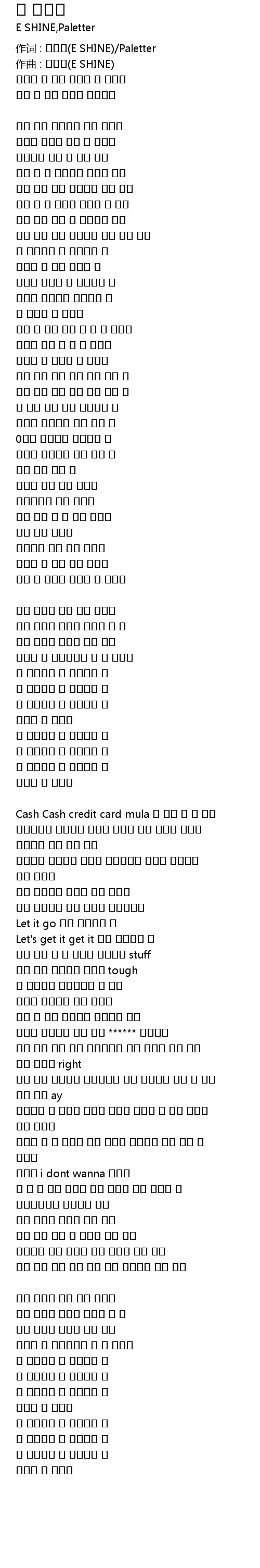 作词 : 이샤인(E SHINE)/Paletter |