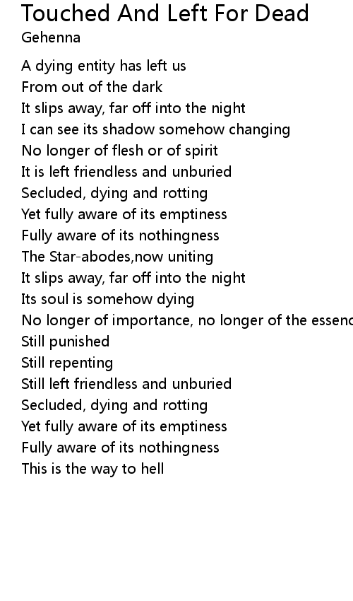 | Still left friendless and unburied | |